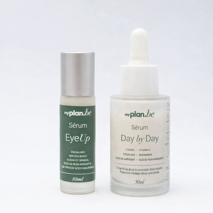 O Sérum Day by Day ajuda a manter a hidratação diária da pele, enquanto o Sérum Eye Up cuida da área dos olhos, auxiliando na prevenção dos primeiros sinais e preparando a região para a maquiagem.